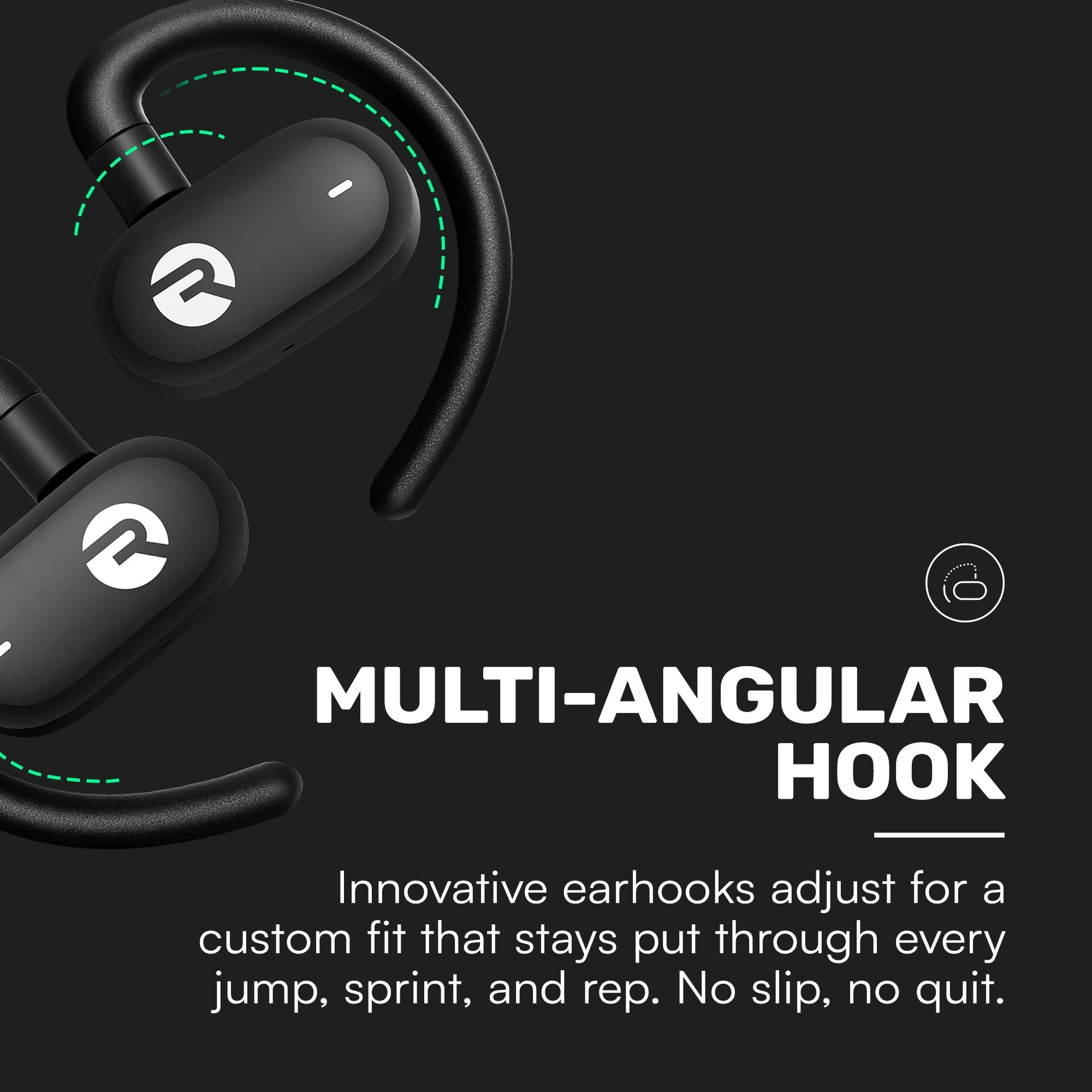 An innovative hook design keeps your earbuds secure through runs, lifts, and high-intensity sessions. Buds rotate on an axis for a custom fit that won’t slip, no matter the workout.